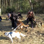 Alle Hunde benahmen sich wieder hervorragend. Selbst Rosi, die am Anfang noch mit jedem Hund Streit suchte, lief nach kurzer Zeit brav mit ihrem Wahl-Herrchen neben den anderen her. Und auch unsere kleinen polnischen Kurzbeiner Filus, Dixi und Co. brachte die lange Tour überhaupt nicht aus der Puste. Jungspund Attila genoss die vielen Streicheleinheiten, die er sich während der Pausen permanent einforderte. Opi Don erfreute es, von so vielen netten Hunden und Menschen umgeben zu sein.