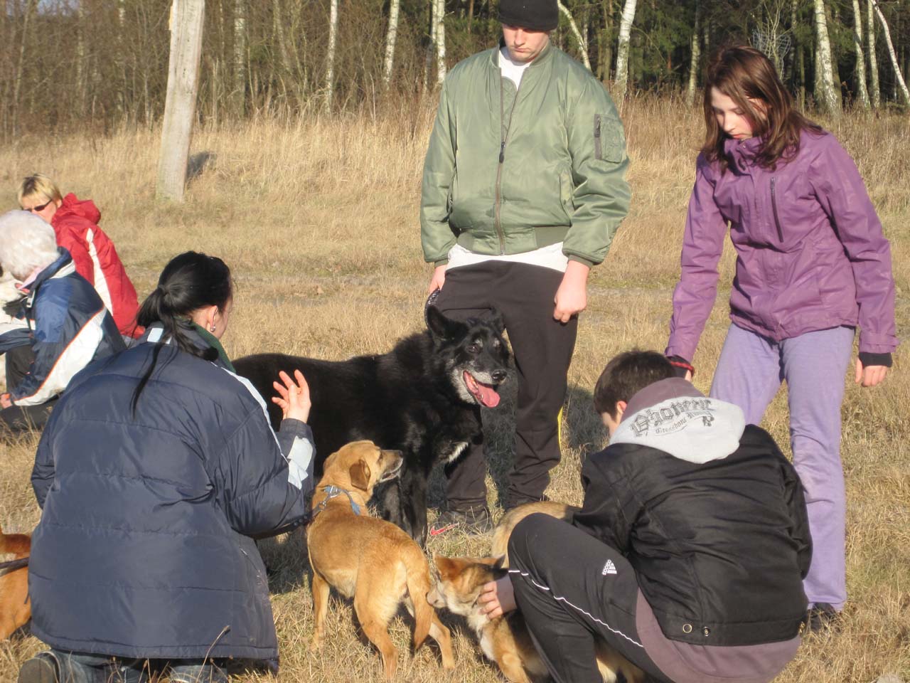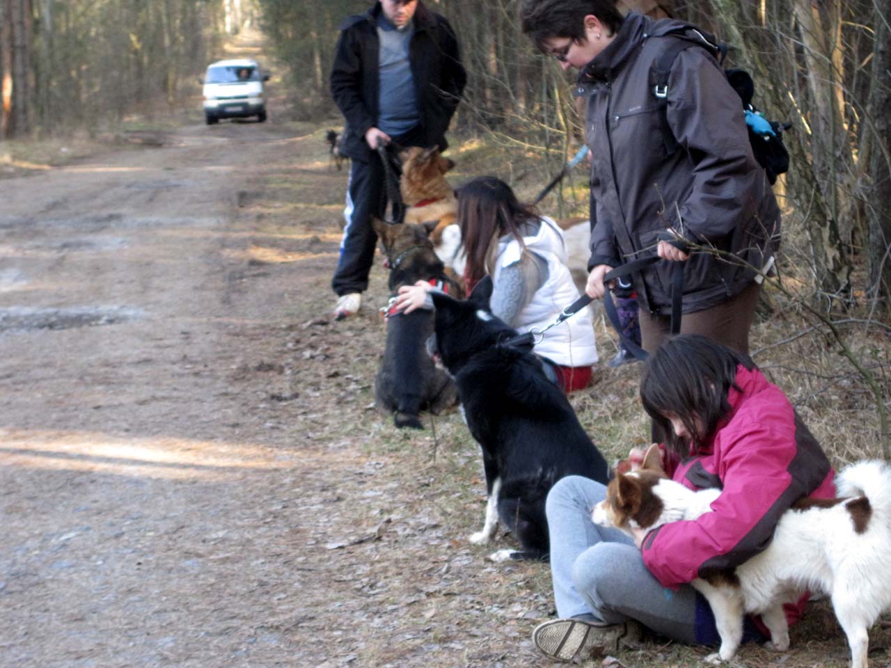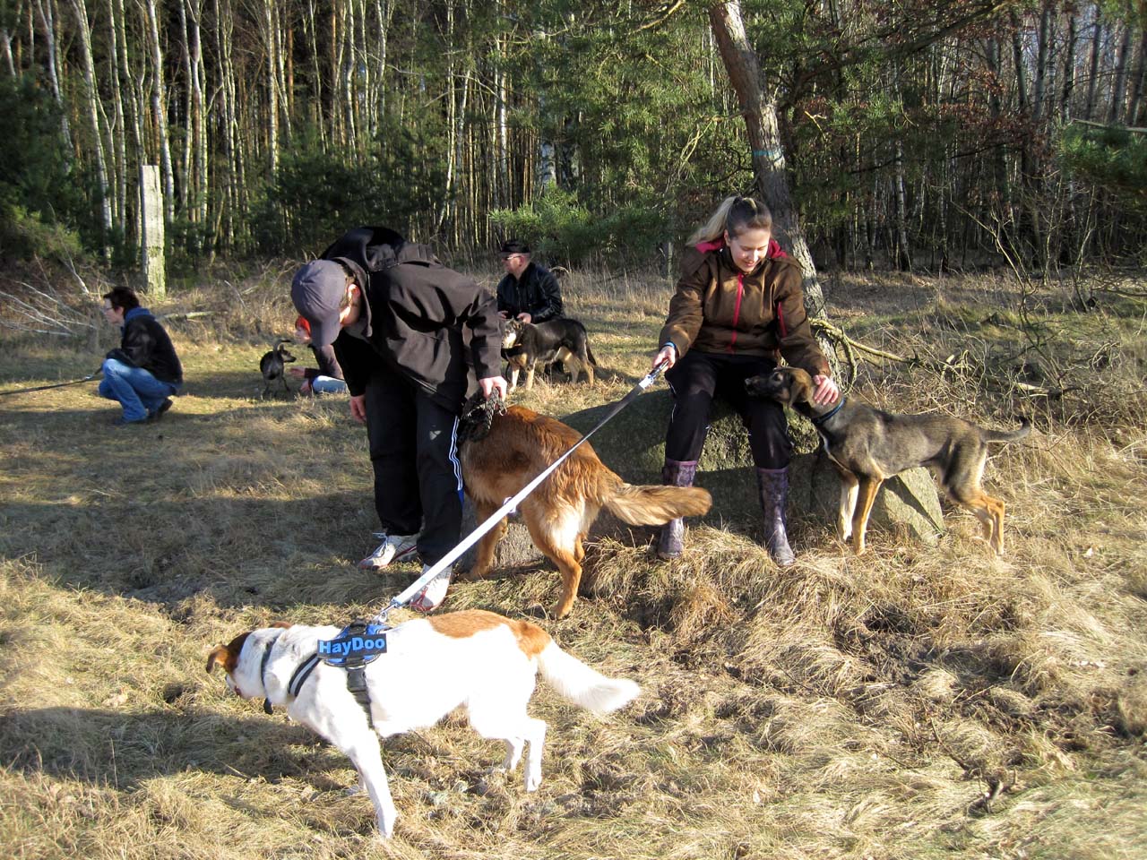 Alle Hunde benahmen sich wieder hervorragend. Selbst Rosi, die am Anfang noch mit jedem Hund Streit suchte, lief nach kurzer Zeit brav mit ihrem Wahl-Herrchen neben den anderen her. Und auch unsere kleinen polnischen Kurzbeiner Filus, Dixi und Co. brachte die lange Tour überhaupt nicht aus der Puste. Jungspund Attila genoss die vielen Streicheleinheiten, die er sich während der Pausen permanent einforderte. Opi Don erfreute es, von so vielen netten Hunden und Menschen umgeben zu sein.