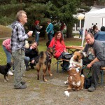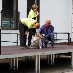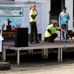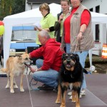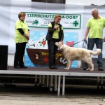 Auch unsere Hundevorführungen wurden diesmal unter verschiedene Mottos gestellt. Da kamen die „Zwerge“, die „Gemütlichen“, die „Eisbären“ und die „Riesen“ auf die Bühne. Und auch unser Gigant unter den Tierheimhunden, „Chacco“, durfte beim Programm nicht fehlen und sorgte im Publikum für staunende Gesichter, als Tierpflegerin Sabine ihn mit Pferdehalfter gesichert durch die Menge führte. Jedoch nicht nur Chacco wurde bewundert, einige unserer Hunde durften erste Kontakte mit ihren vielleicht zukünftigen Herrchen und Frauchen knüpfen. Als ganz besonderes Sorgenfellchen wurde Jaimy auf der Bühne vorgestellt. Bei dem armen Kerl wurde erst vor wenigen Tagen eine Kehlkopflähmung festgestellt. Er muss für viel Geld in einer Spezialklinik operiert werden, damit er noch ein langes Leben hat. Dank unserer lieben Besucher und ihren vielen Spenden an diesem Tag, können wir nun Jaimy in Kürze operieren lassen.