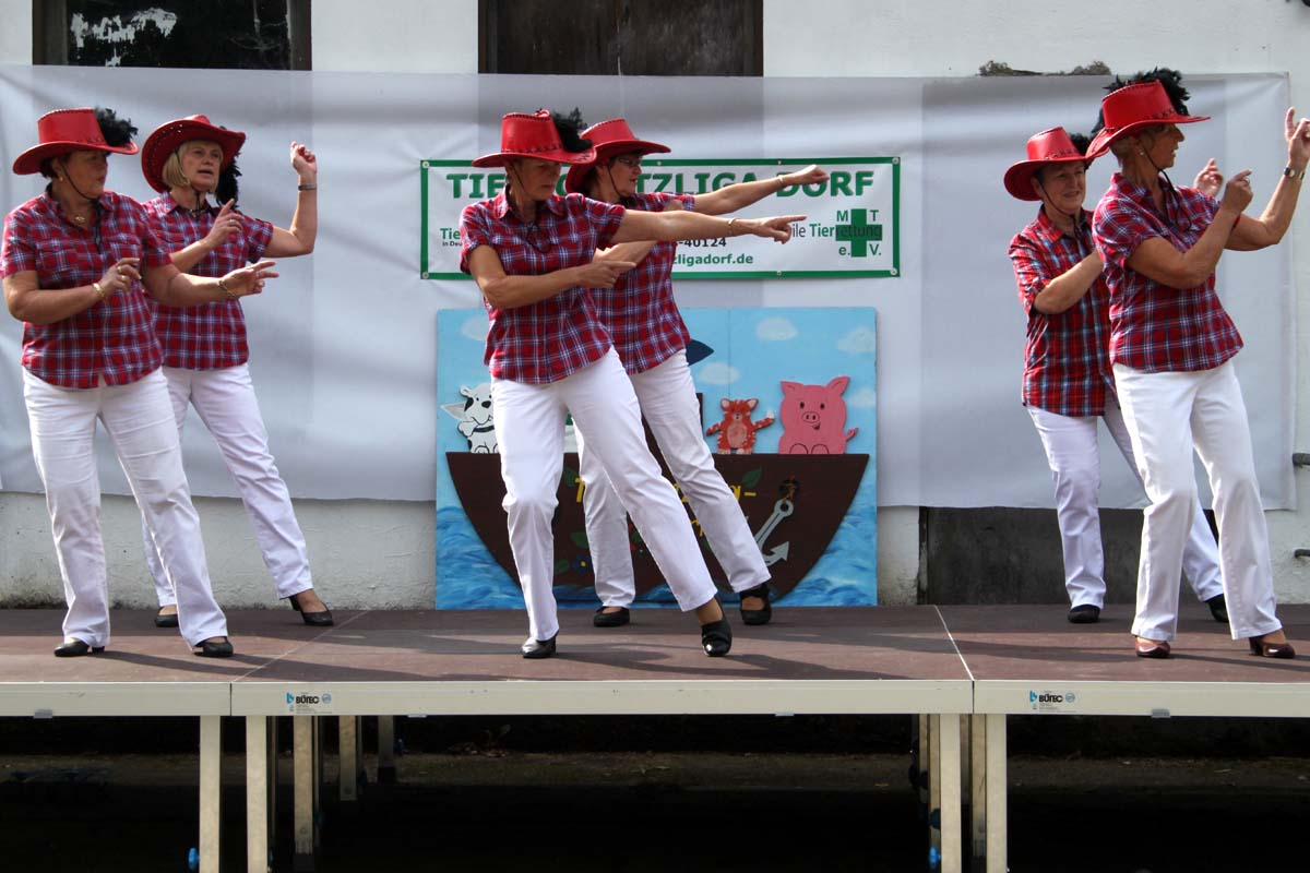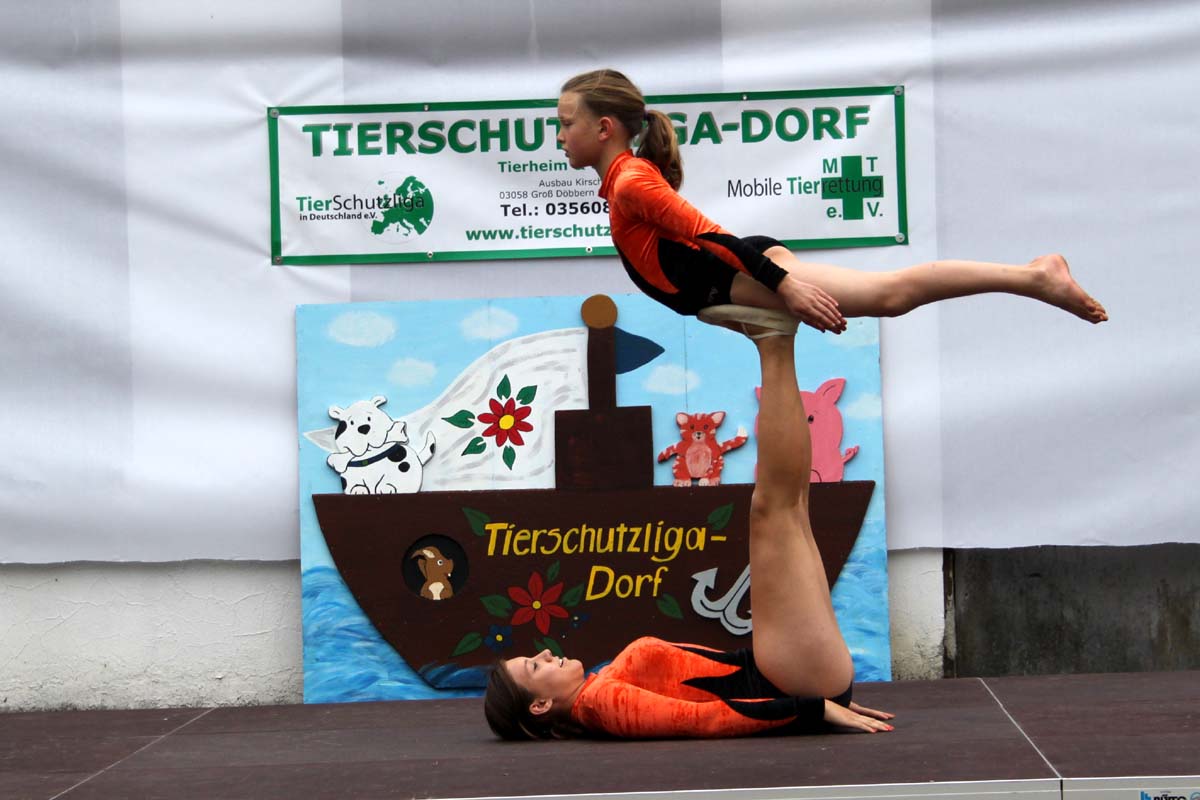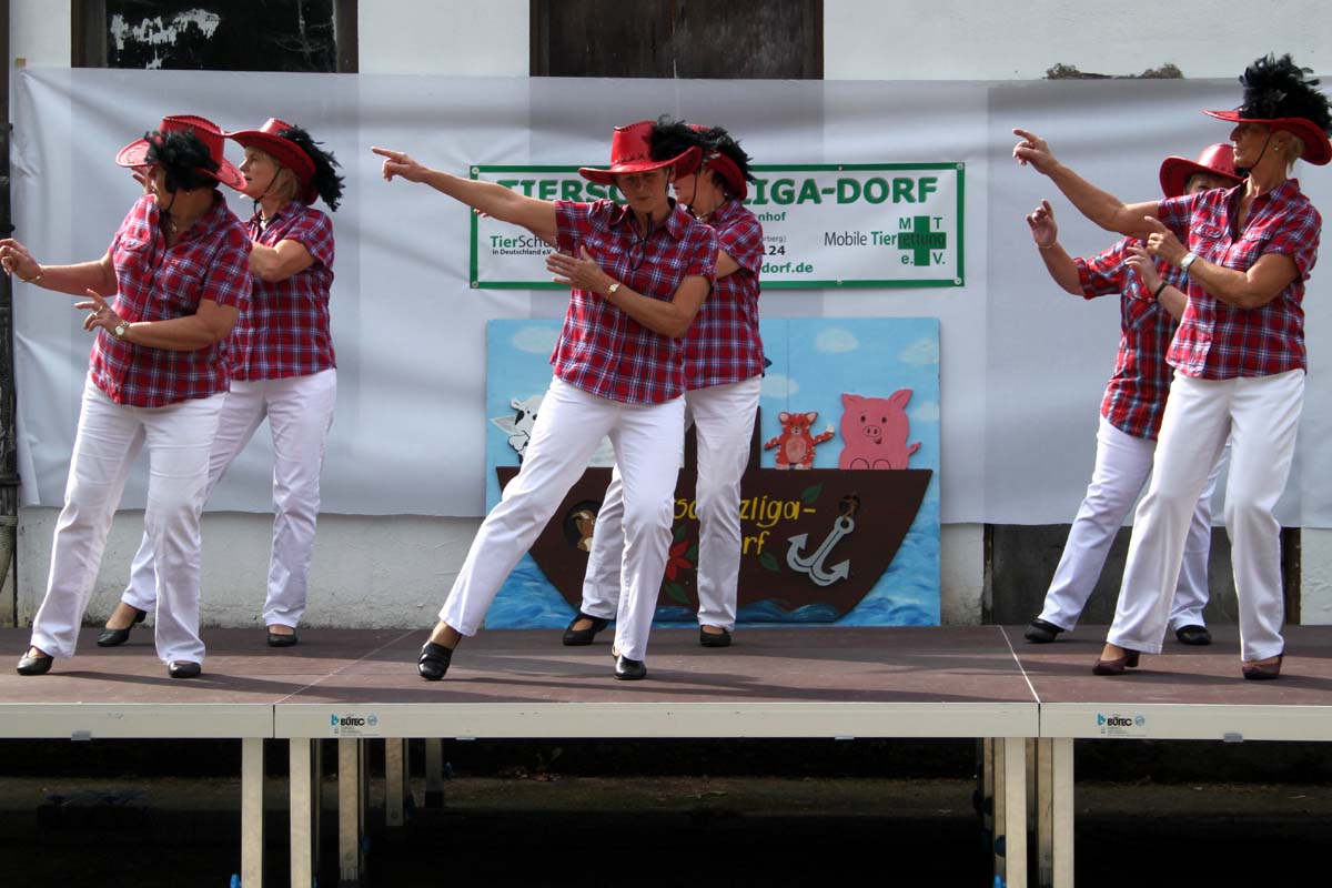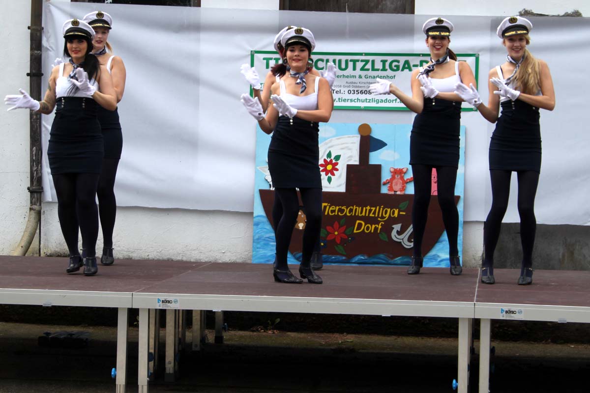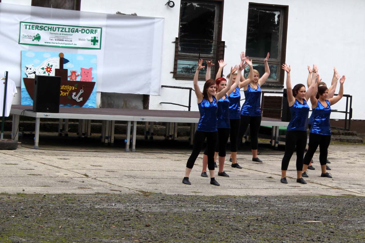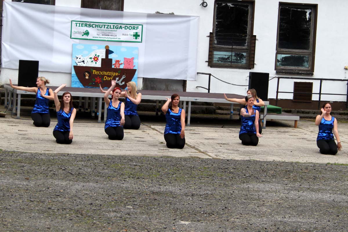 Diesmal hatte unsere Mitarbeiterin Steffi sich für das Programm etwas ganz besonderes einfallen lassen. Neben den obligatorischen Vorführungen der Tierheimhunde waren die „Hot Soles“ aus Lübbenau, eine Line-Dance Gruppe, und die Funkengarde aus Annahütte, eine Akrobatikvorführung, sowie eine Vorführung des Hundesportvereins Welzow mit dabei. Die Hot Sole-Tanzgruppe begrüßte das Publikum gleich zu Beginn mit einer tollen Show und sorgte zwischendurch mit ihrem König der Löwen-Auftritt für ein bisschen Wildnis auf dem Tierheimgelände.