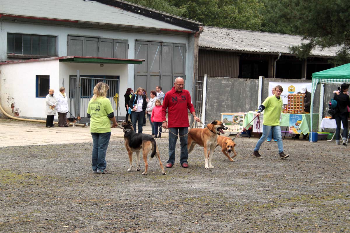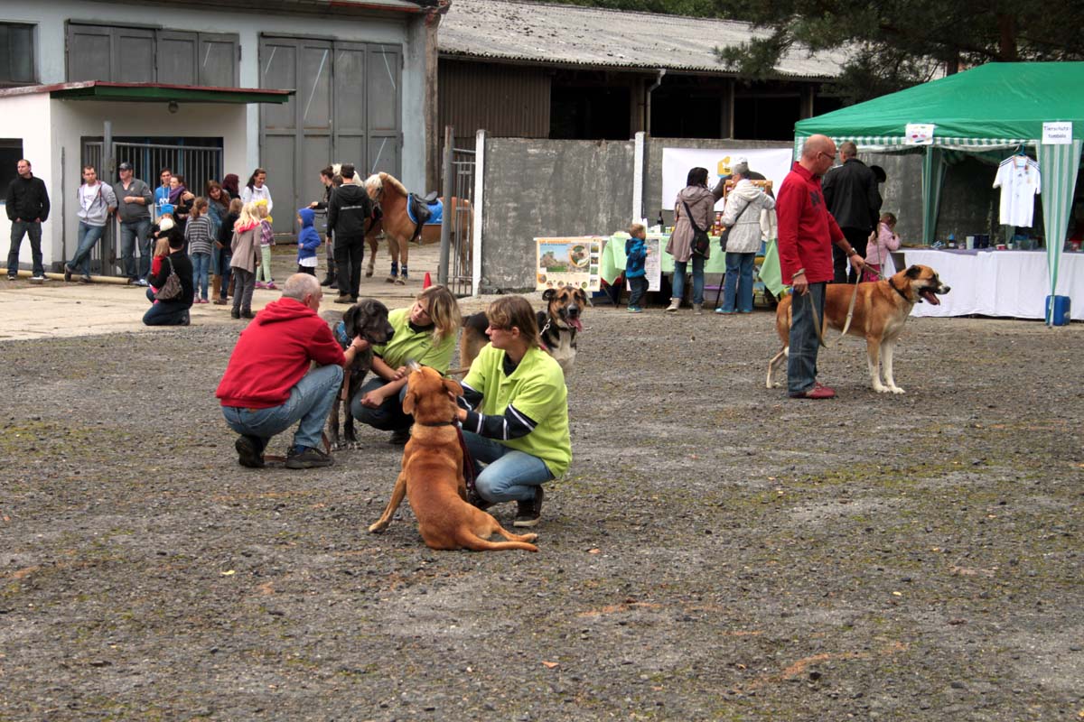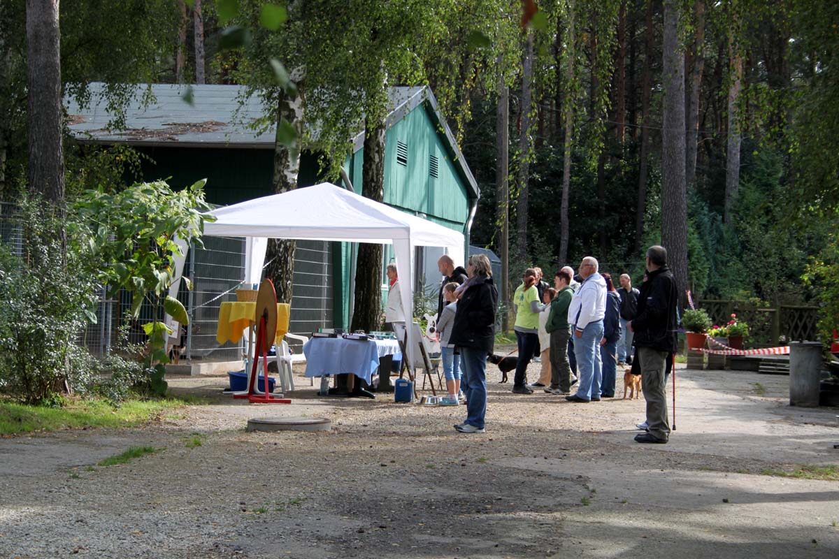 Was für ein Tag – der Wahlsonntag am 22. September 2013. Vielleicht war es die Bundestagswahl (weil man ja eh schon einmal draußen unterwegs war), vielleicht auch das gute Wetter, ganz bestimmt aber das Interesse an unseren Tieren und unserer Arbeit, die an diesem Tag weit über 700 Besucher in unser Tierschutzliga-Dorf zum Tag der offenen Tür trieb. Bereits lange vor dem Öffnen der Tierheimtore standen die ersten Besucher davor und schon kurze Zeit später war unser Parkplatz vorm Bunker bis auf den letzten Platz belegt.