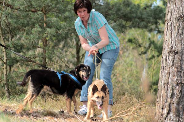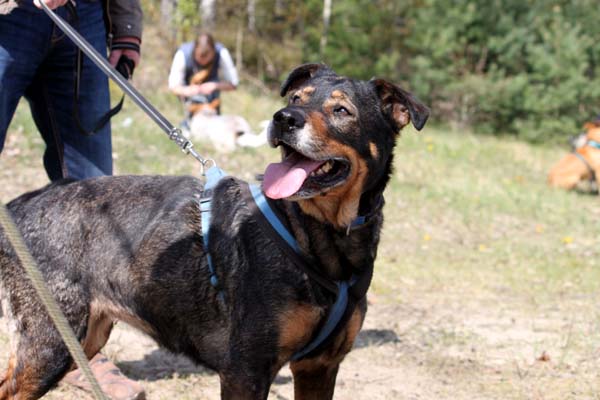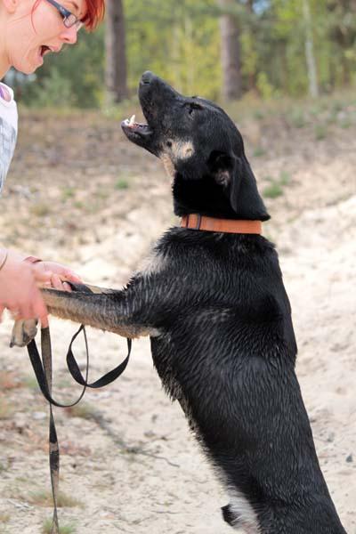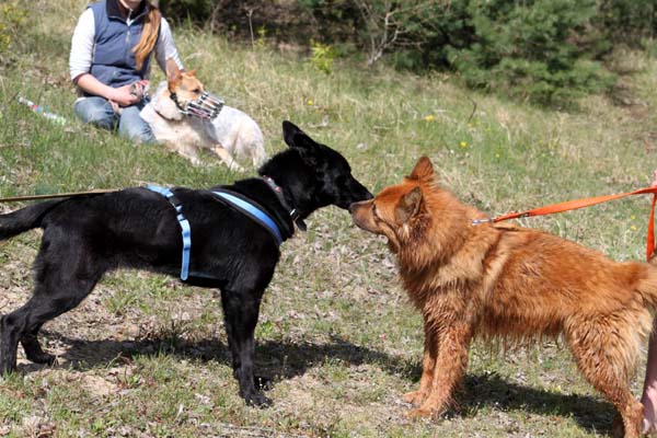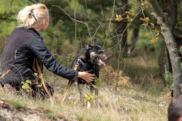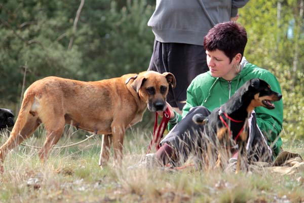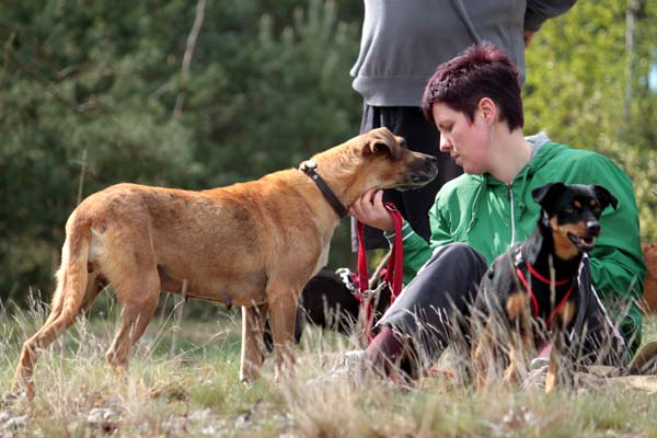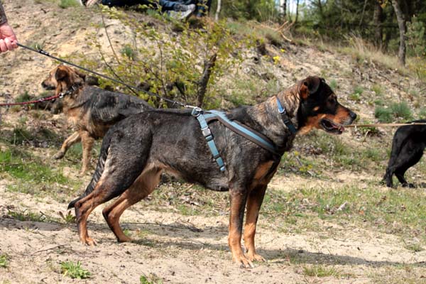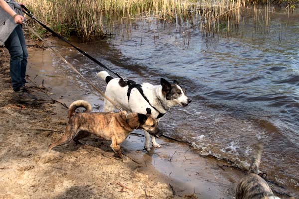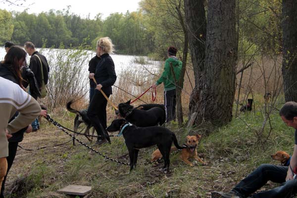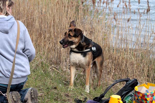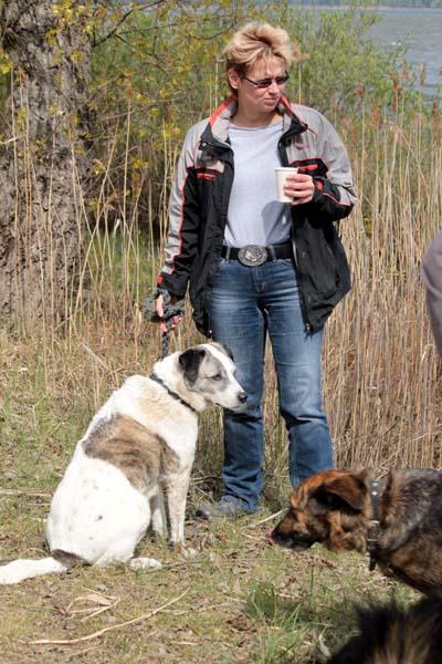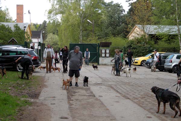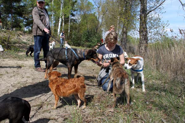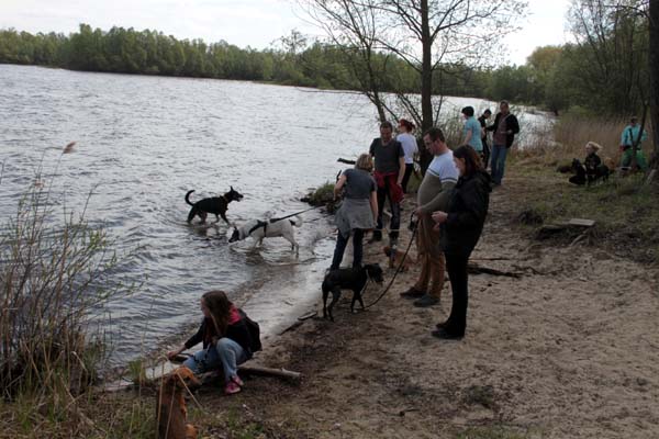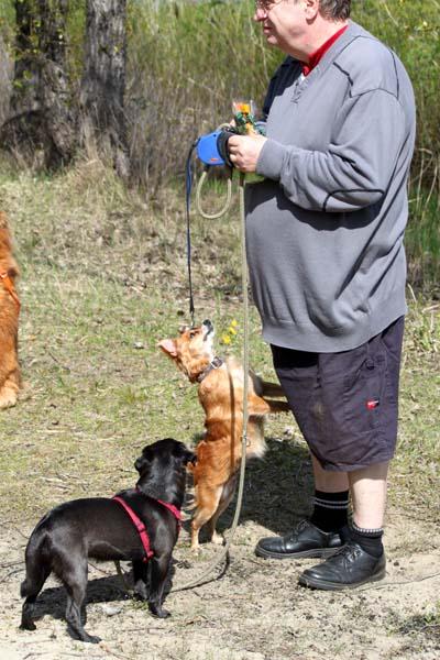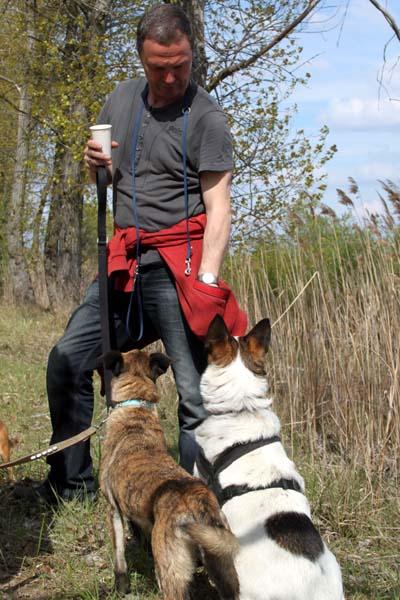 Alle Hunde benahmen sich vorbildlich, auch wenn Klara anfangs etwas herum zickte und Jojo vor Aufregung seinem Hundeführer lange Arme bescherte. Selbst Cherry, die, gesichert mit Beißkorb, zum ersten Mal dabei war, genoss den großen Ausflug und war super brav.