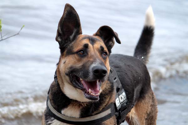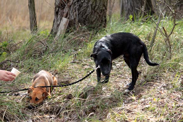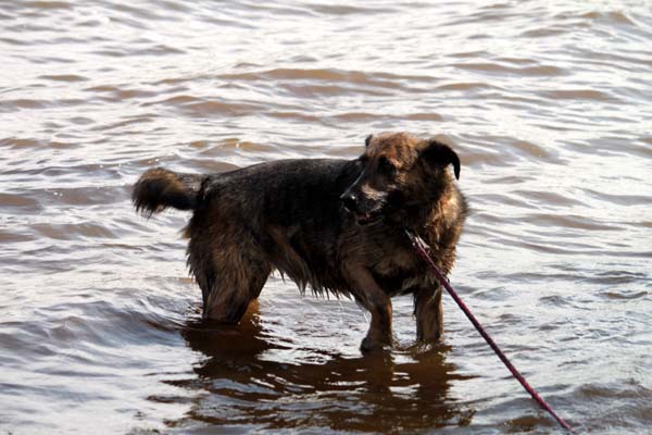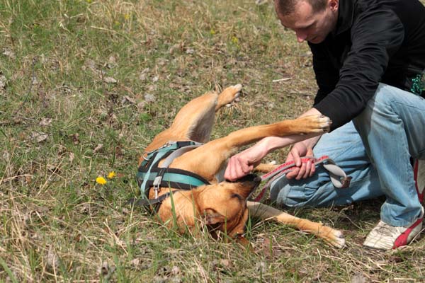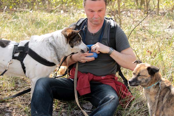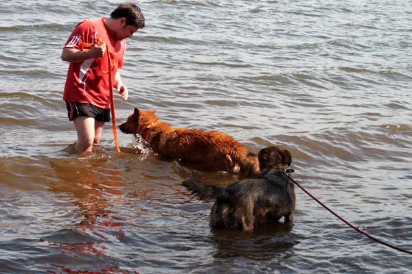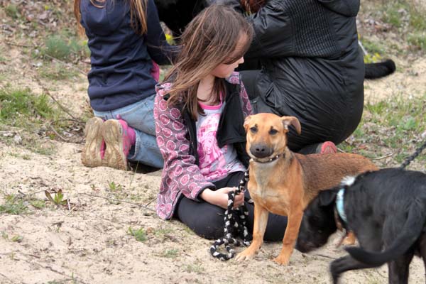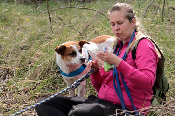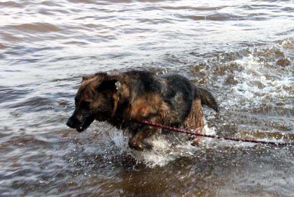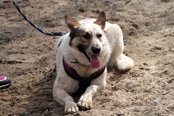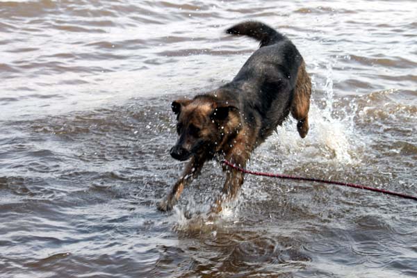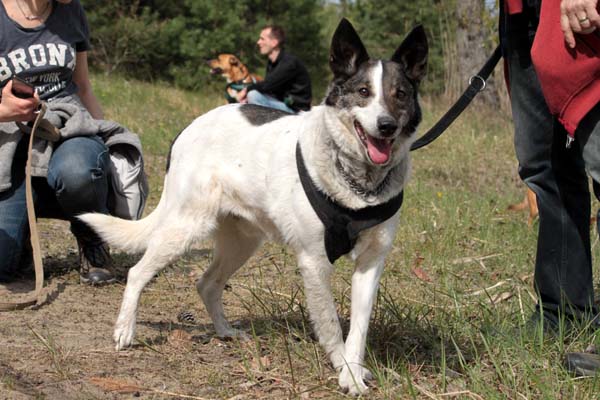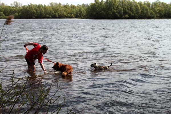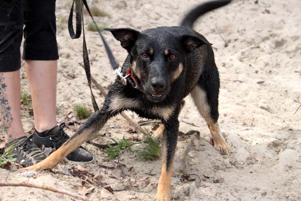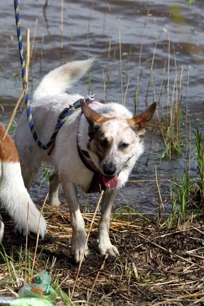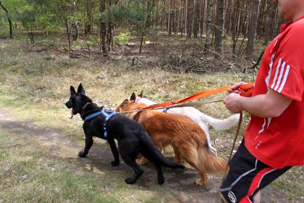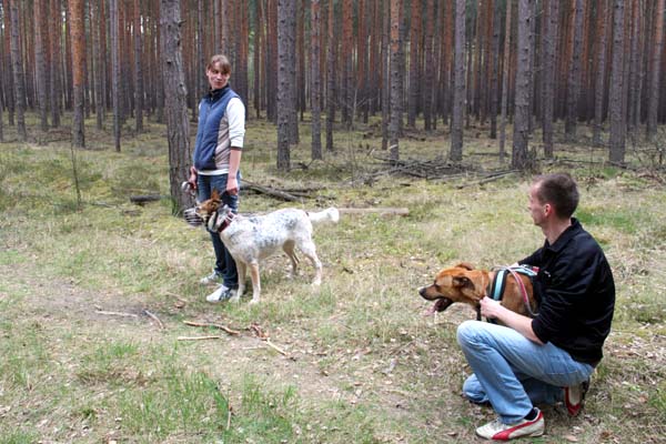 Alle Hunde benahmen sich vorbildlich, auch wenn Klara anfangs etwas herum zickte und Jojo vor Aufregung seinem Hundeführer lange Arme bescherte. Selbst Cherry, die, gesichert mit Beißkorb, zum ersten Mal dabei war, genoss den großen Ausflug und war super brav.