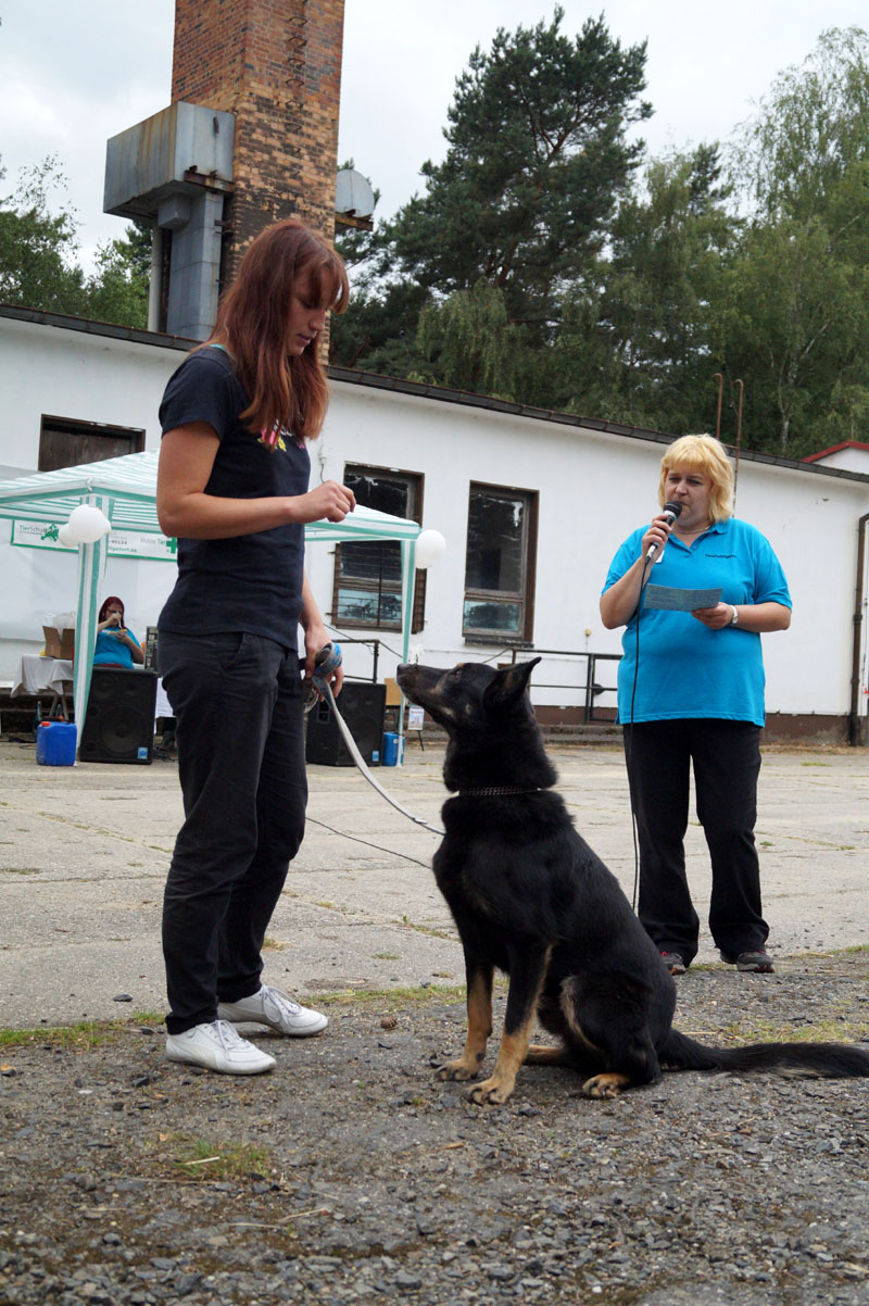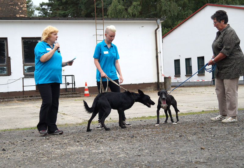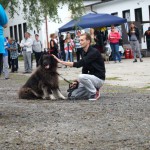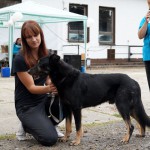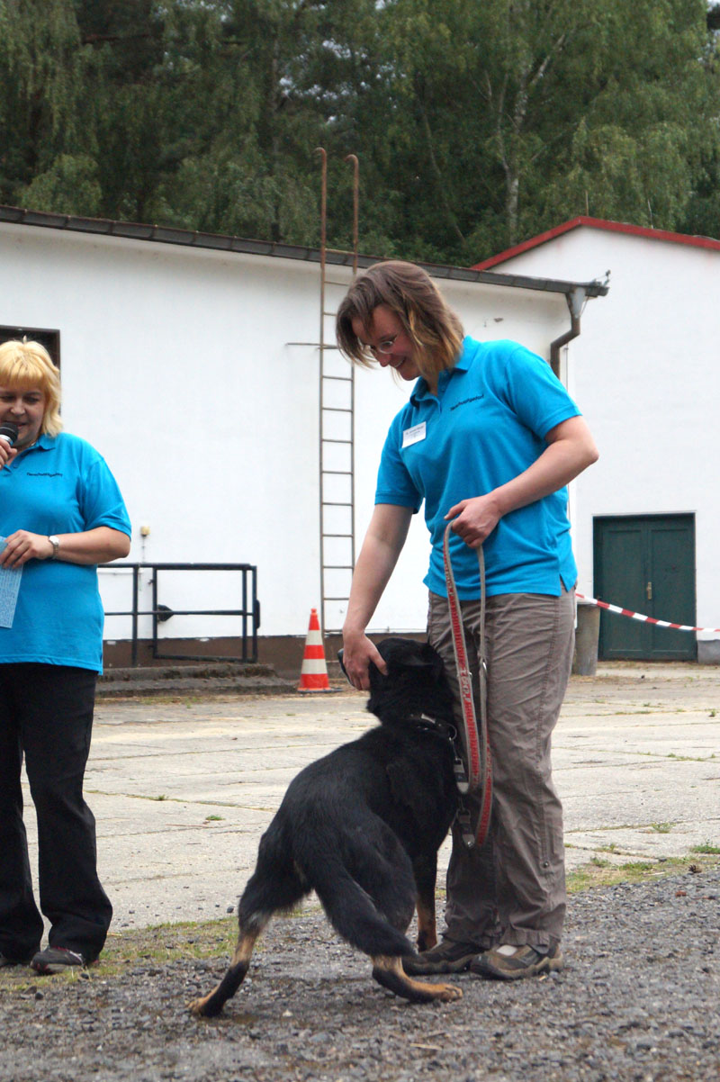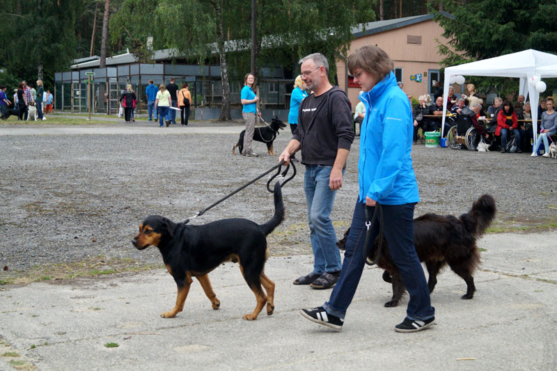 Aber auch das Programm auf dem großen Paradeplatz im Herzen des Tierheimes sorgte wieder für reges Interesse. Hundepflegerin Liane zeigte dieses Jahr wieder eine bunte Auswahl an Tierheimhunden, die von unseren lieben ehrenamtlichen Helfern vorgeführt und ausführlich vorgestellt wurden. Ganz besonders stolz waren wir auf Ivel – unseren Patenhund – der zum ersten Mal vor so großer Menschenmenge seinen Auftritt hatte und dies mit Bravour meisterte. Eine liebe Patin war extra wegen ihm angereist und hatte ihm eine Tüte mit Leckerli mitgebracht. Ganz brav nahm Ivel diese aus ihrer Hand und machte sogar „Sitz“ dafür. Eine riesige Leistung für diesen misstrauischen Hund.