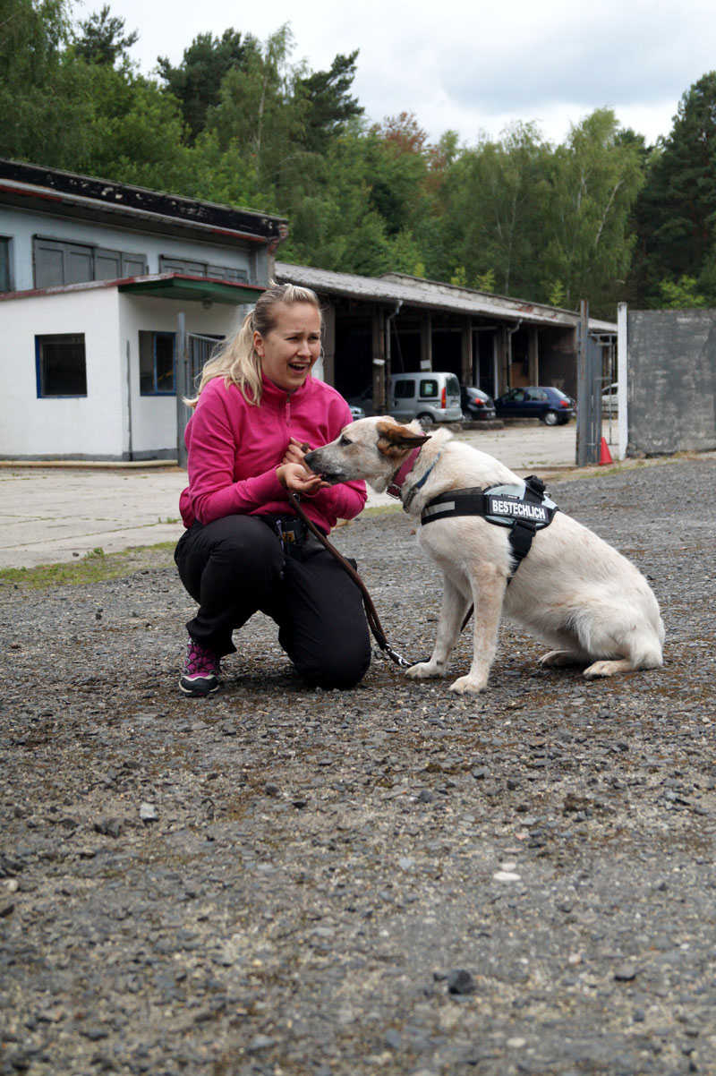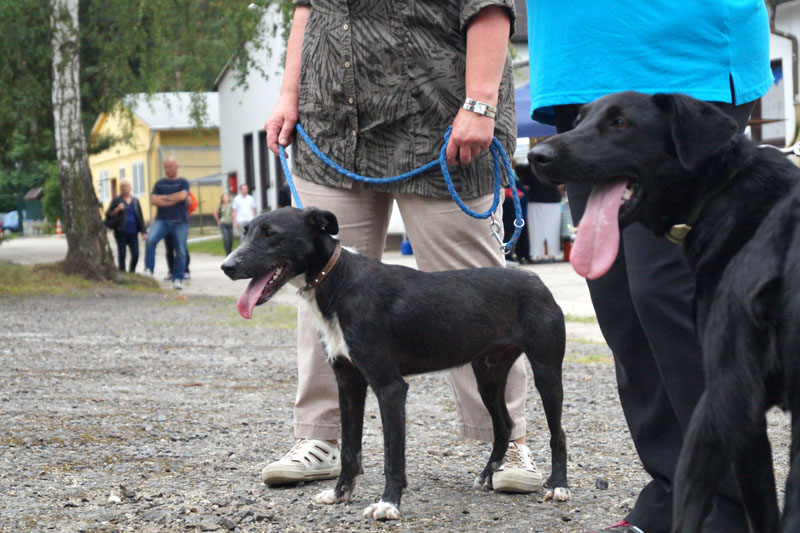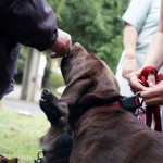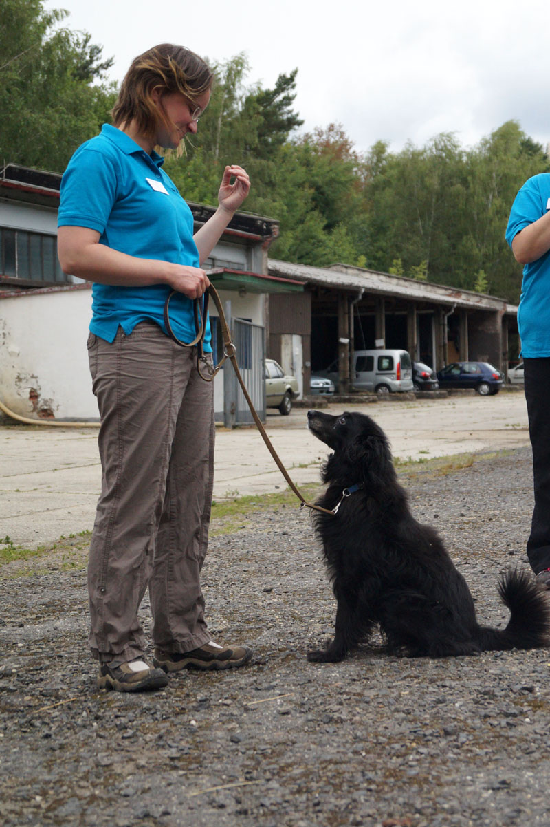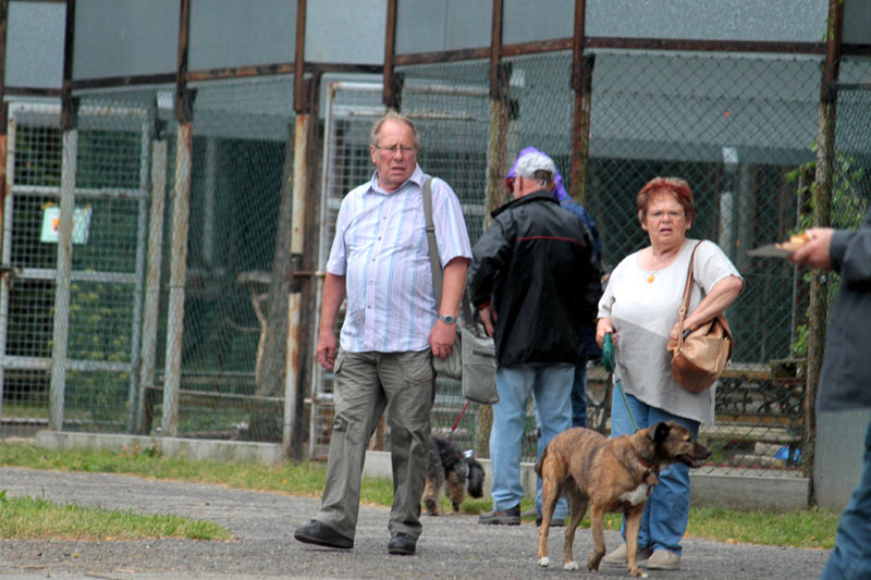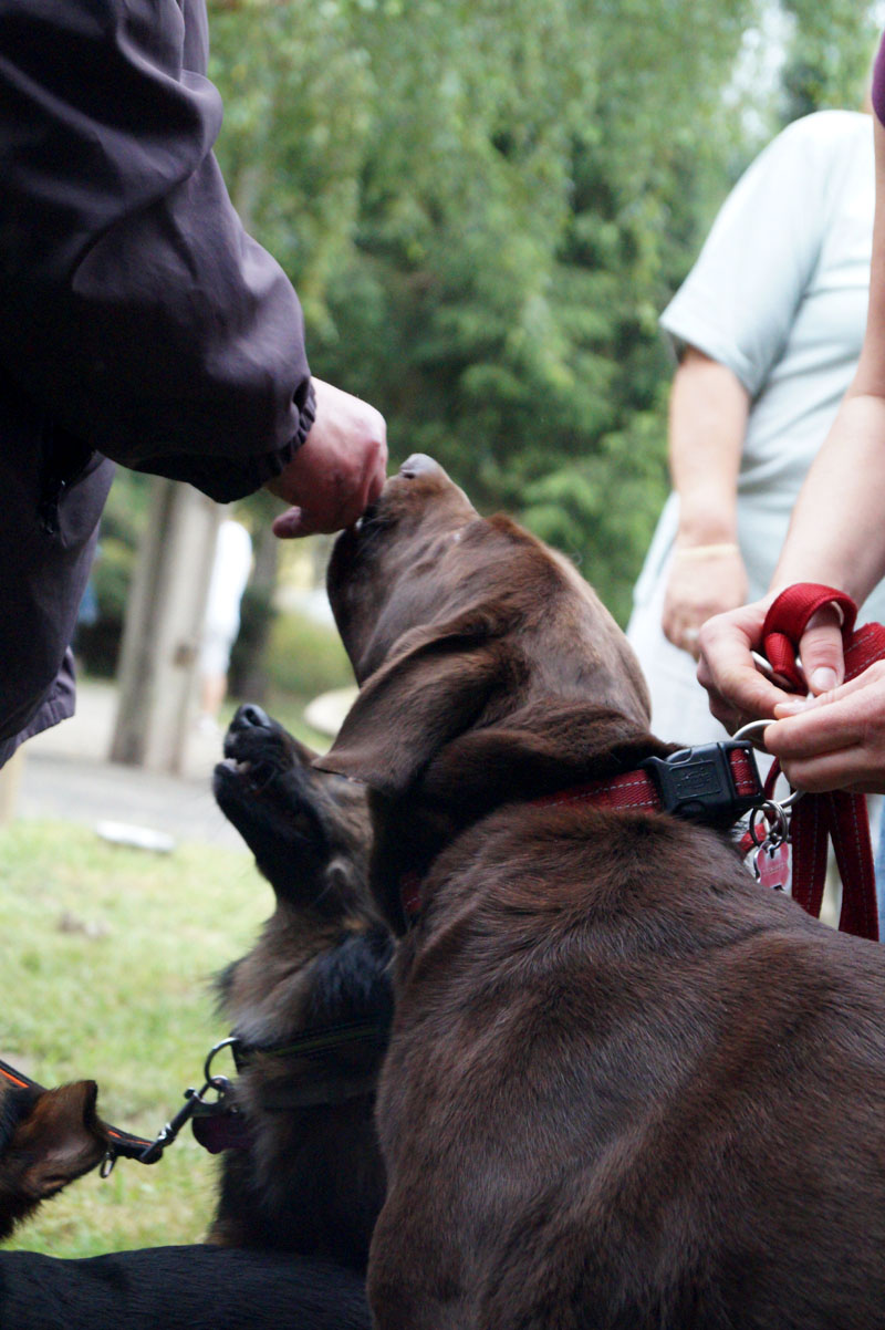 Aber auch das Programm auf dem großen Paradeplatz im Herzen des Tierheimes sorgte wieder für reges Interesse. Hundepflegerin Liane zeigte dieses Jahr wieder eine bunte Auswahl an Tierheimhunden, die von unseren lieben ehrenamtlichen Helfern vorgeführt und ausführlich vorgestellt wurden. Ganz besonders stolz waren wir auf Ivel – unseren Patenhund – der zum ersten Mal vor so großer Menschenmenge seinen Auftritt hatte und dies mit Bravour meisterte. Eine liebe Patin war extra wegen ihm angereist und hatte ihm eine Tüte mit Leckerli mitgebracht. Ganz brav nahm Ivel diese aus ihrer Hand und machte sogar „Sitz“ dafür. Eine riesige Leistung für diesen misstrauischen Hund.