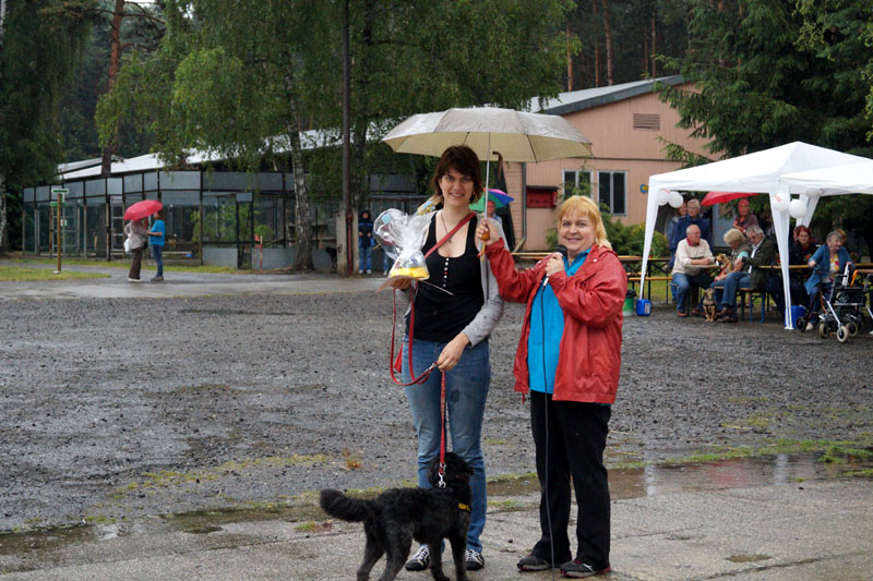 Aus der Dia-Show: ScheckübergabeBei inzwischen strömenden Regen bewiesen die Mensch-Hunde-Teams der Rettungshundestaffel, dass sie auch unter widrigsten Witterungsbedingungen einsatzbereit sind. Für viel Spaß sorgte auch das Hunderennen, wo jeder Besucherhund teilnehmen konnte.
