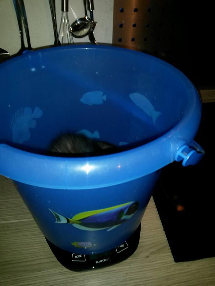 Dir böse Vroni hat mich in den Eimer gesteckt ich will hier raus. .. 7 Tafeln Schoki wiege ich fast, sagt die Vroni und freut sich.