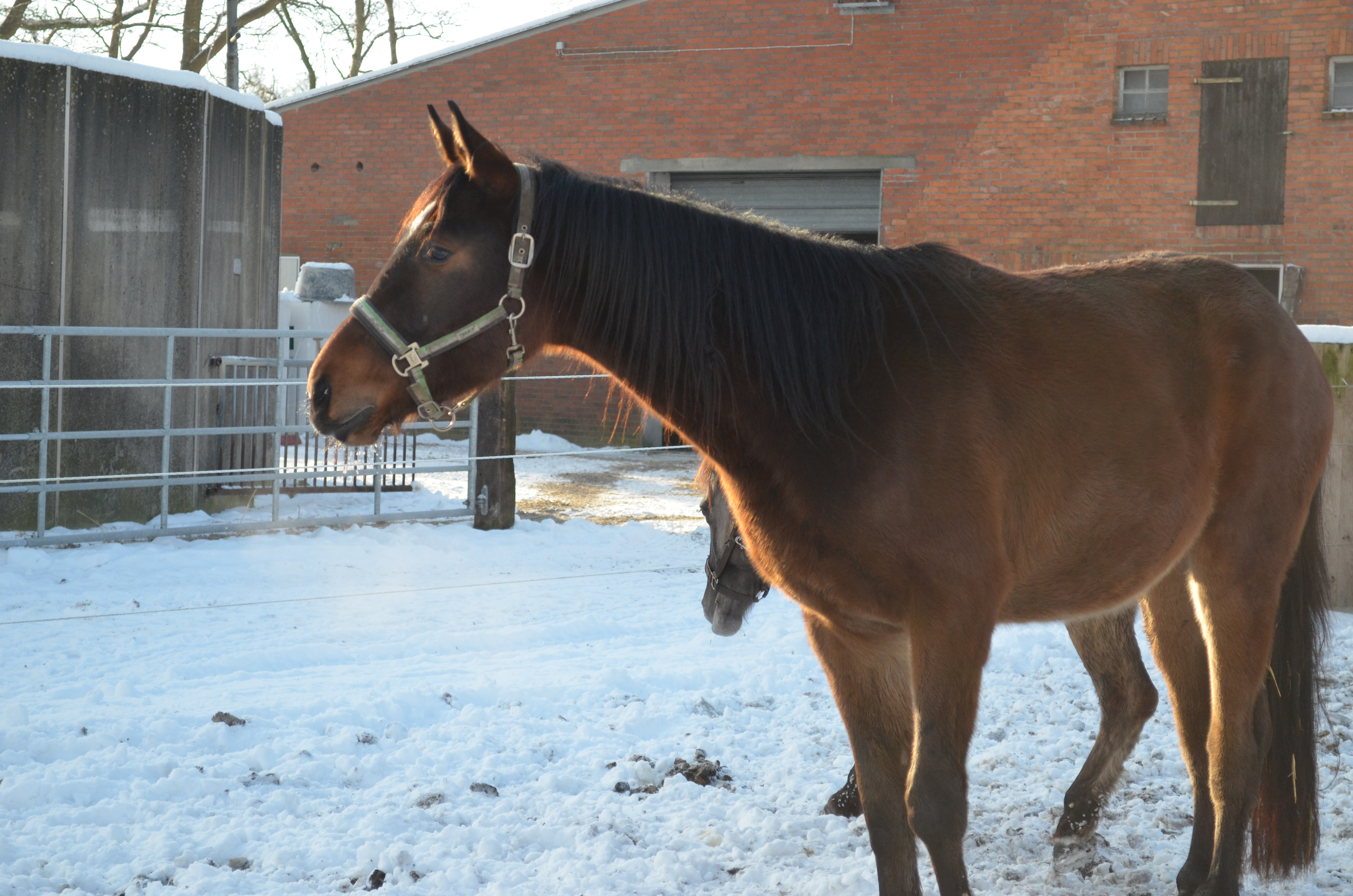 Vollblut-Trakehner Pferd Poseidon im Schnee
