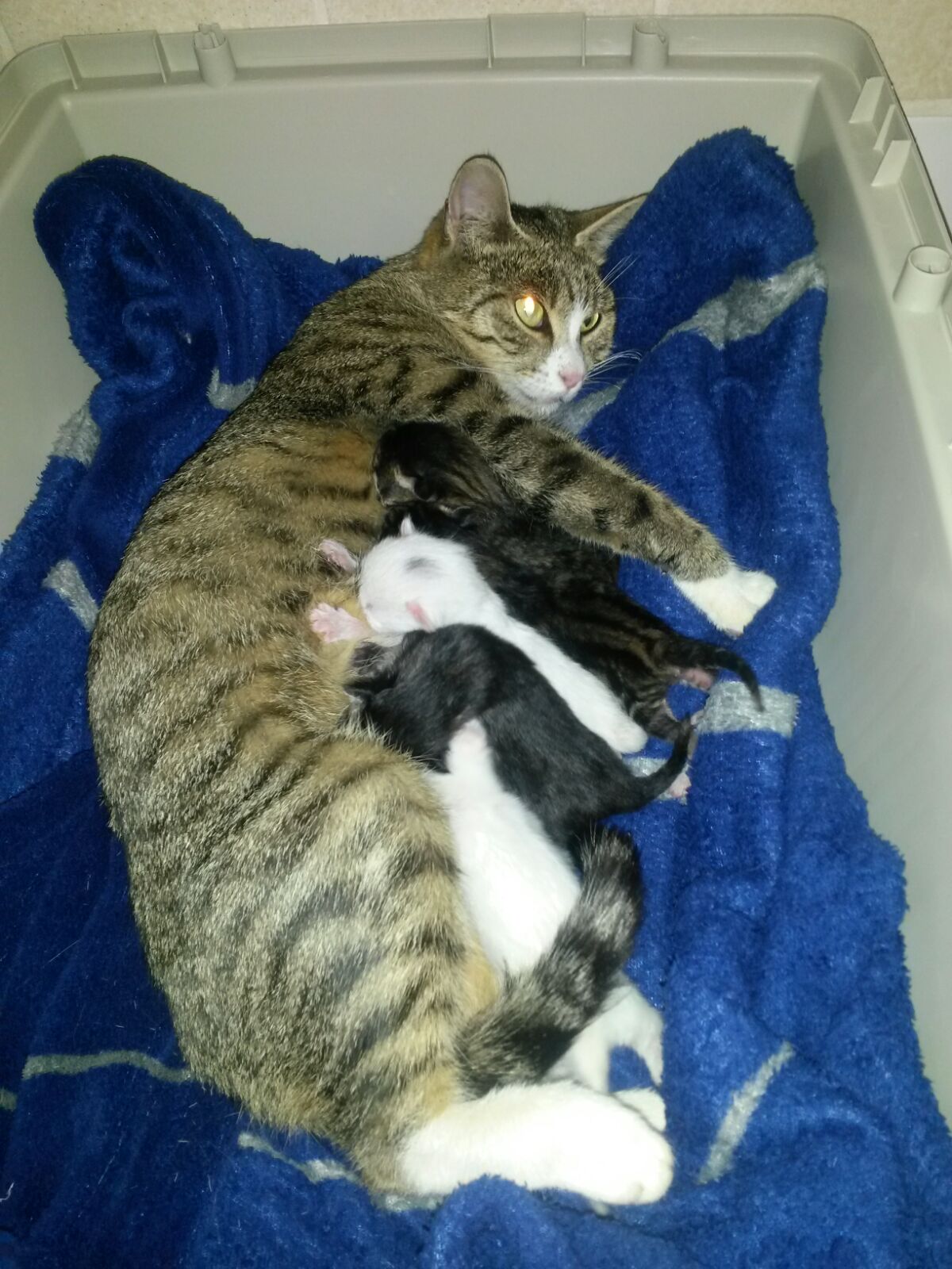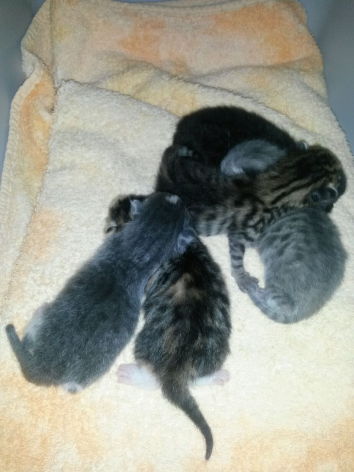 Wir hatten bereits alle Katzenbabys aufgepäppelt und vermittelt. Dann wurden uns wieder Fundkatzen gebraucht. Die 6 Babys der getigerten Mama sind 3 Wochen alt und die vier Babys der schwarzweißen Mama sind 2 Wochen alt. Alle 10 Babys benötigen nun einen „Start-ins-Leben-“Paten, der an sie glaubt, Ihnen einen Namen gibt und die Grundkosten für Kastration, Impfung, Chip, Untersuchung und ähnliches übernimmt. Dies sind mindestens einmalig 100 Euro.