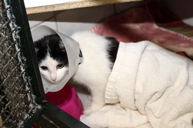 Absolutes Glück im Unglück hatte diese schwer verletzte Katze! Der Kleine wurde uns gestern gebracht, weil sein Hinterteil verletzt war. Zum Glück ist dies jemanden aufgefallen und er hat nicht weggeschaut. Der Kater hat eine schlimme Verletzung am Hintern. Der Hoden hing frei und war bereits vereitert. Auf dem Rücken hat er kleinere Bisslöcher. Sicherlich ist er von einem anderen Tier angegriffen wurden. Wir haben ihn in aller Eile zu unserer Tierärztin gebracht, er war wirklich brandeilig. Sie musste sofort eine Not-OP durchführen und seine Wunden versorgen. Bei uns heißt der liebe Kater nun Karlchen. Kennt ihn jemand (Fundort Peitz)?