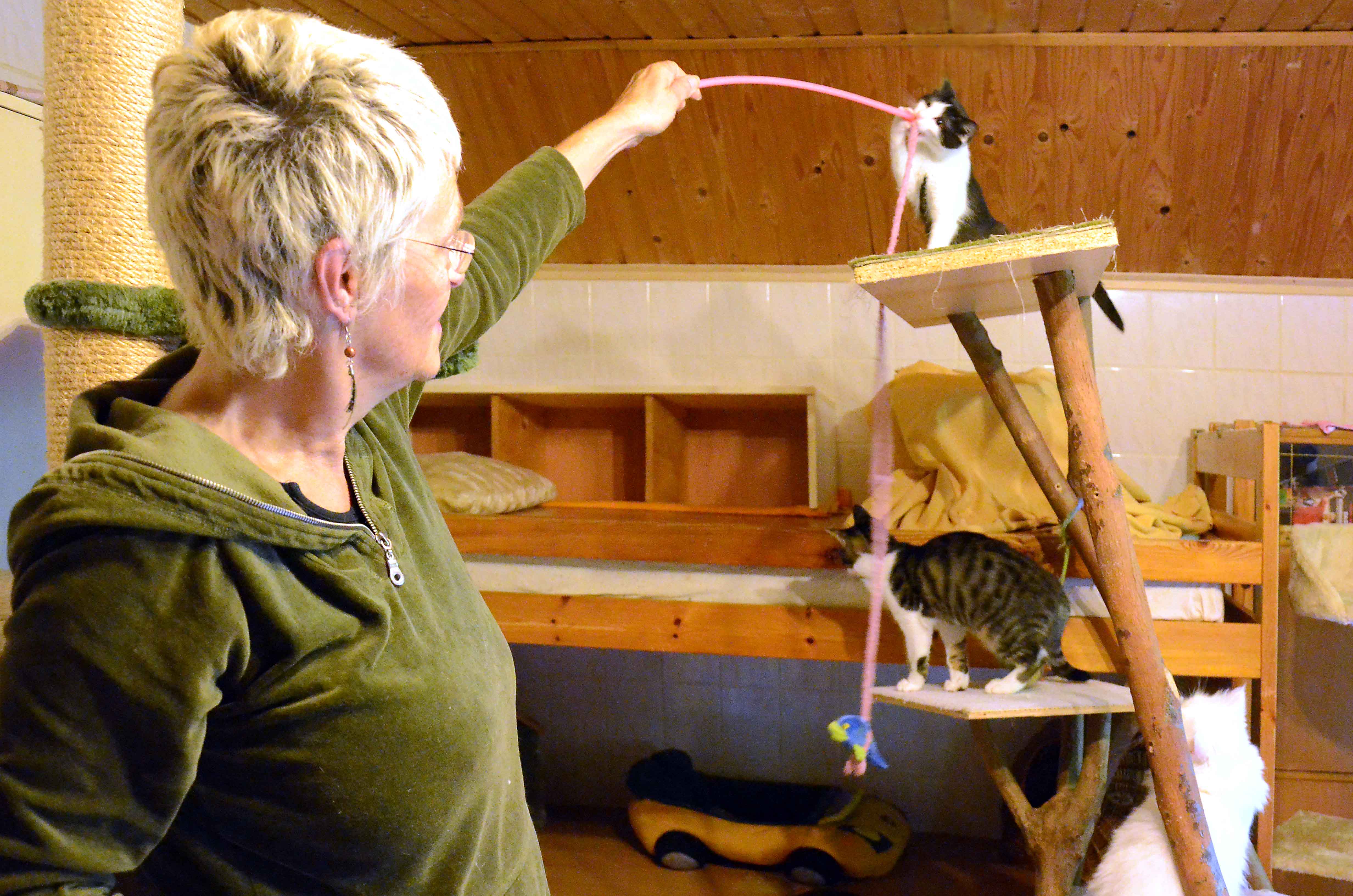 Wer mit Tieren arbeitet, hat nie Pause. Darum gibt es für die Mitarbeiter eine Frühschicht und eine Spätschicht. Drei Kolleginnen und Helga Grüning teilen sich die Arbeit. Der Morgen beginnt mit dem Zusammenstellen des Futters, Entwurmungen, Medikamentengabe, später folgt das gründliche Reinigen der Katzenzimmer oder Fahrten zum Tierarzt.