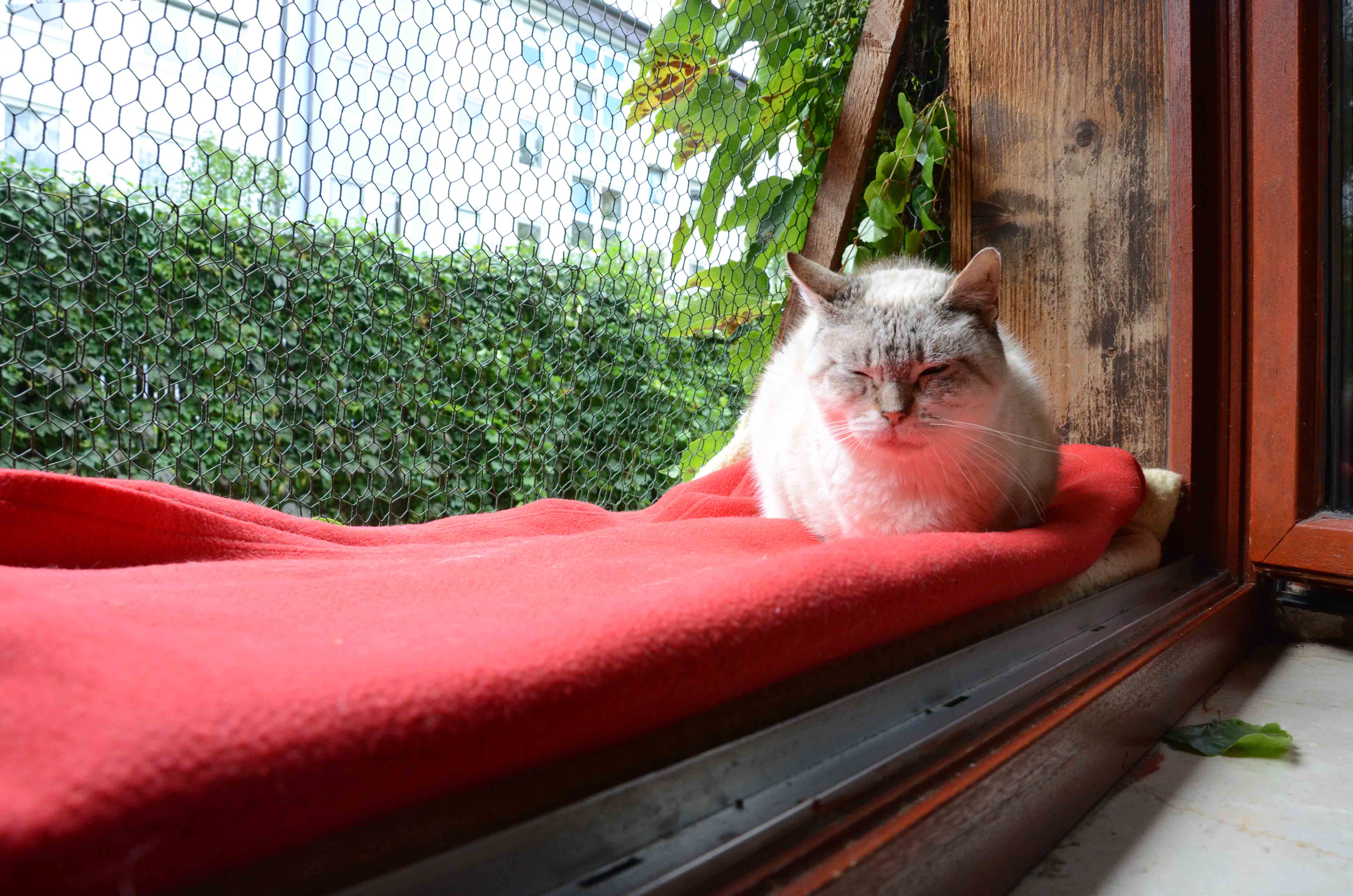Wie zum Beispiel Angelo, der mit acht Jahren zu uns kam. Er war ausgesprochen scheu, hatte ein völlig kaputtes Auge. In der Tieraugenklinik musste ein Auge entfernt werden, auf dem anderen Auge sieht er unscharf. Niemand interessierte sich für ihn, und darum lebt nun als Freigangkatze bei uns. Er hat sich super eingewöhnt, genießt den Freigang ganz besonders und liebt es, auf Bäume zu klettern.